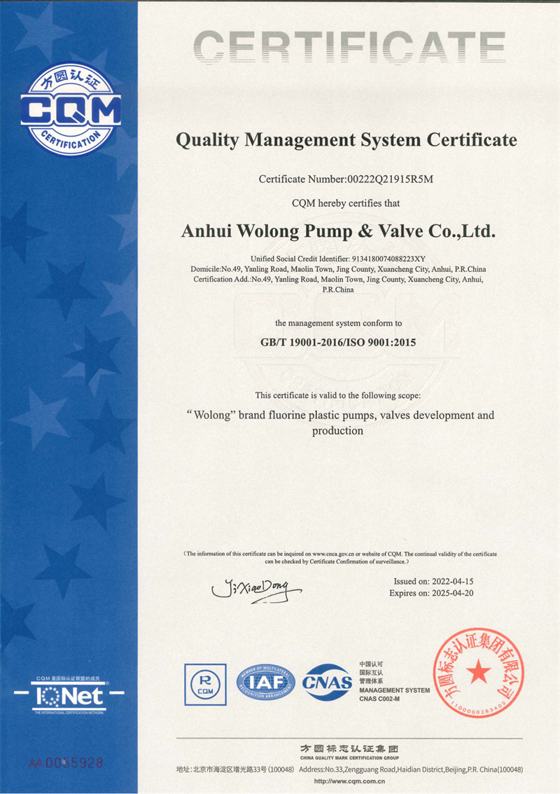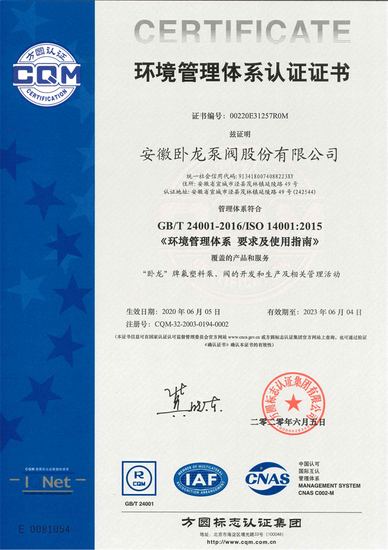 安徽臥龍泵閥股份有限公司:氟塑料泵閥產品生產和研發專家