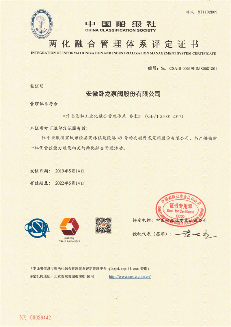 安徽臥龍泵閥股份有限公司